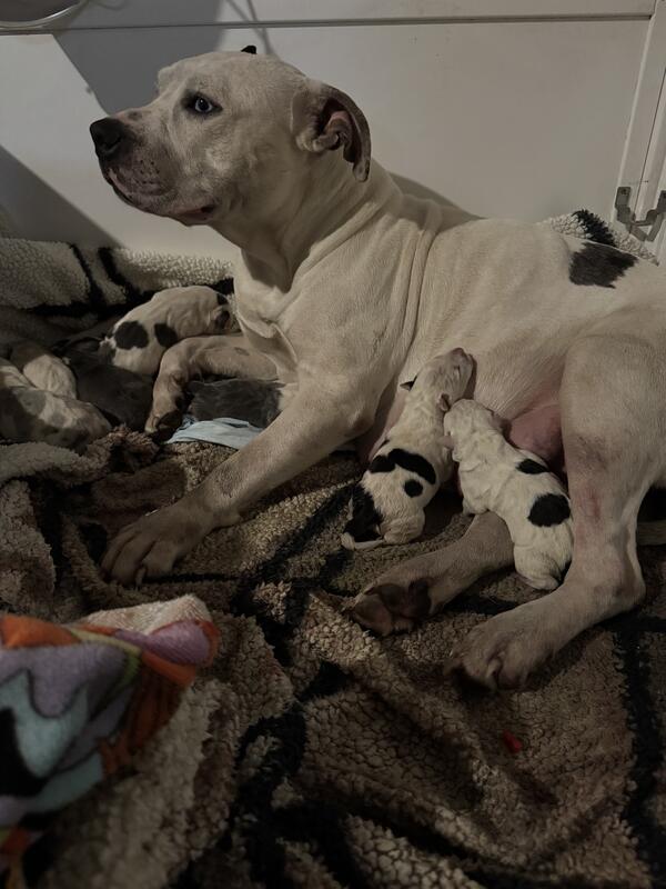 message russy100 about this ad I will have more pics available puppies where born today Nov. 26, 11 puppies total will take deposit for serious inquiries only! Contact seven 0 eight 6 hundred 55 eighty six ! YouTube MANBITESDOGADVENTURES |