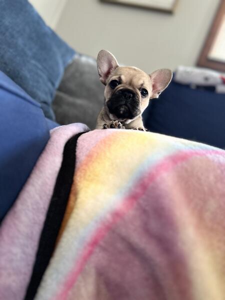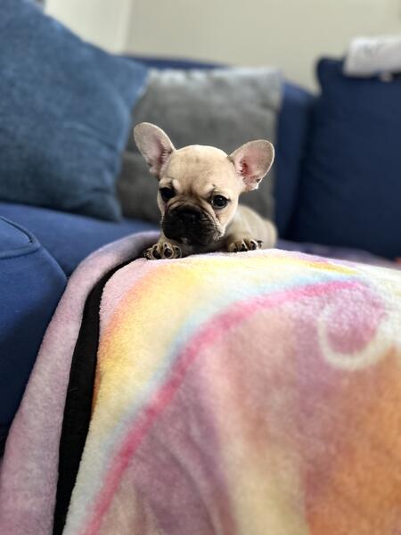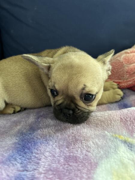 8 week old blue fawn female French bull dog.Akc papers, parents on site, shots and wormed ready to go
