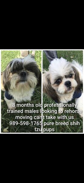 2 male 8 month old shih tzu puppies that have been professionally trained. Loving forever homes only.