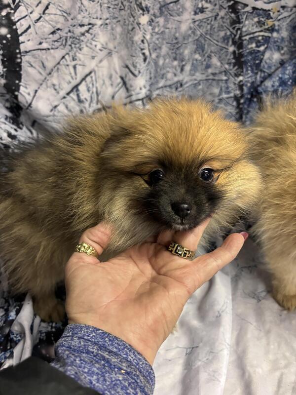 message tiny4paws about this ad AKC registered Pomeranian puppies! We have two litters. All are current on all shots and worming and comes with a written one-year health guarantee! Two girls , a red sable or creamy merel, and two boys red sable, and black! Raised in our home used to kitty cats, other dogs and children. Call Renee 316-772-2243 |