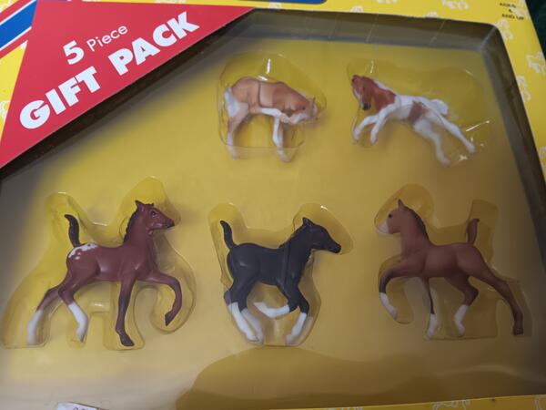 message thumperswolves about this ad Brand new in box! Never opened. The Breyer Stablemates Collection #5982 5-Piece Gift Set features beautiful horse figurines that are perfect for collectors, or as a gift for equine lovers. This set includes five foals, each carefully detailed and made from high-quality durable plastic. Breyer Horses are well-known for their quality and collectability. This lovely set is no exception.The horses are designed with attention to detail, capturing the essence of the equine species. This set would make a great addition to any collection. |