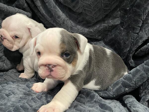 message dward about this ad AKC registered, beautiful Blue and White female full of wrinkles. She has received her 1st round of vaccinations, veterinarian checked and is 7 weeks old and Is about ready for her new family. . |