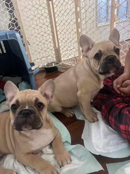 13 week old male French bulldogs. Up to date on vaccines. Healthy ready to go! AKC ELIGIBLE.