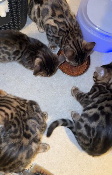 message samo12 about this ad Beautiful purebred Bengal kittens, born May 23, are now 13 weeks old and fully ready for their forever homes! Litter trained Eating dry food and wet food independently Very playful, energetic, and social Raised indoors with lots of human interaction Both parents on-site gorgeous rosetted coats and friendly temperaments These kittens are healthy, active, and at the perfect age to transition into a new home. They are confident and playful, but also love to snuggle when tired! Rehoming fee: $800 9055870084 |