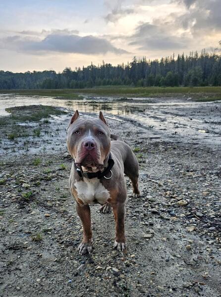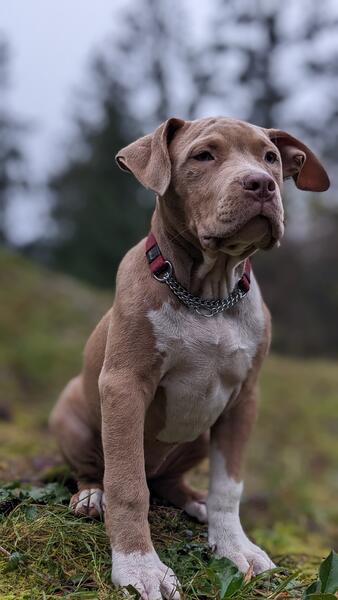 message terrabulls about this ad This is an incredible and beautiful puppy! House broken, crate trained, leash trained, bite inhibition, basic commands, wormed, vaccinated, microchipped and highly socialized and non reactive to a great variety of situations. She is an expert cuddler and enjoys having a strong connection with a special human. Shes got just enough drive for training and a strong will but is incredibly eager to please and intelligent. Her colouring is lilac and tan brindle. Her markings are very subtle but she shimmers both silver and gold tones. Her eyes are a striking grey green. She was bred for health and gentle temperament. Sire and Dam are Embark DNA tested and UKC registered. Sire is from Champion bloodlines. Were located on a wilderness island out of Campbell River but will deliver anywhere on Vancouver Island or to Vancouver. Happy to answer any questions you have or you can find out more at terrabulls.net If youd like to proceed then you could filling out the puppy application on our contact page. message terrabulls about this ad |