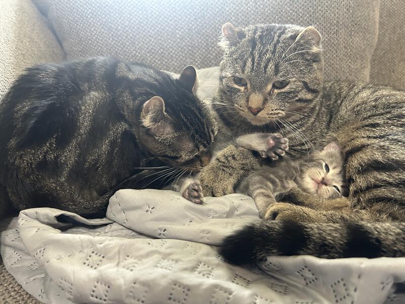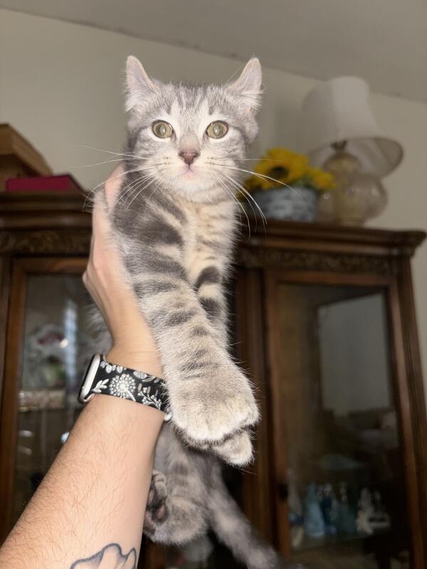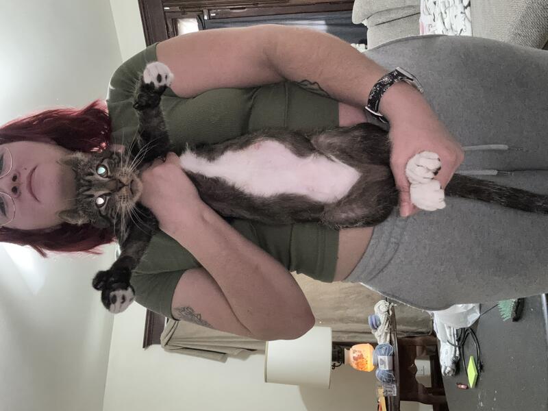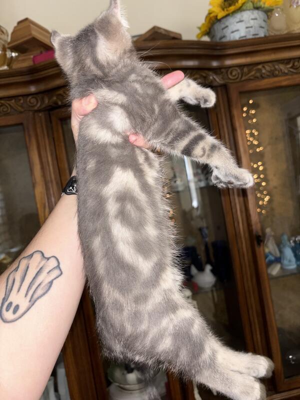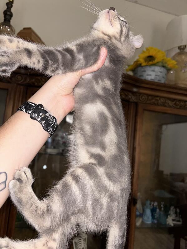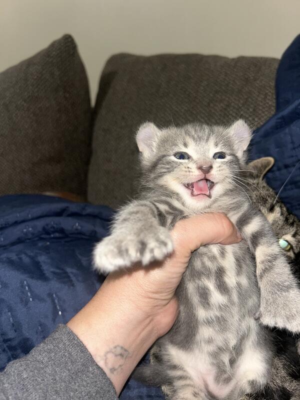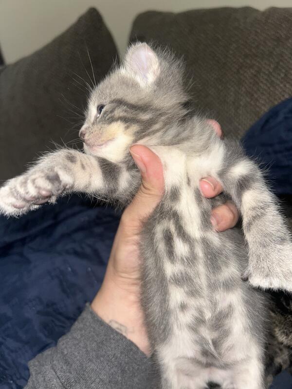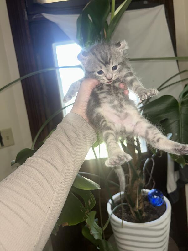 Only one baby available. Female. 4 days old. Has 25 toes and curled ears. Very playful. Ive been calling her Opal.