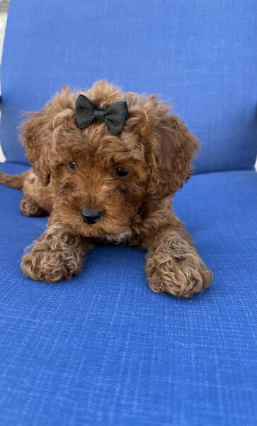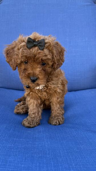 message eande about this ad Ellie looks just like a little live toy! This precious little girl is so sweet, social and friendly. She loves to cuddle on your lap or in your arms just like a little baby. Ellie is F1b Cavapoo and should be around 10lbs full grown. Non shedding and hypoallergenic. She is 3 months old, up to date on shots, dewormer and comes with one year genetic health guarantee. This fur baby will definitely make the heads turn! |