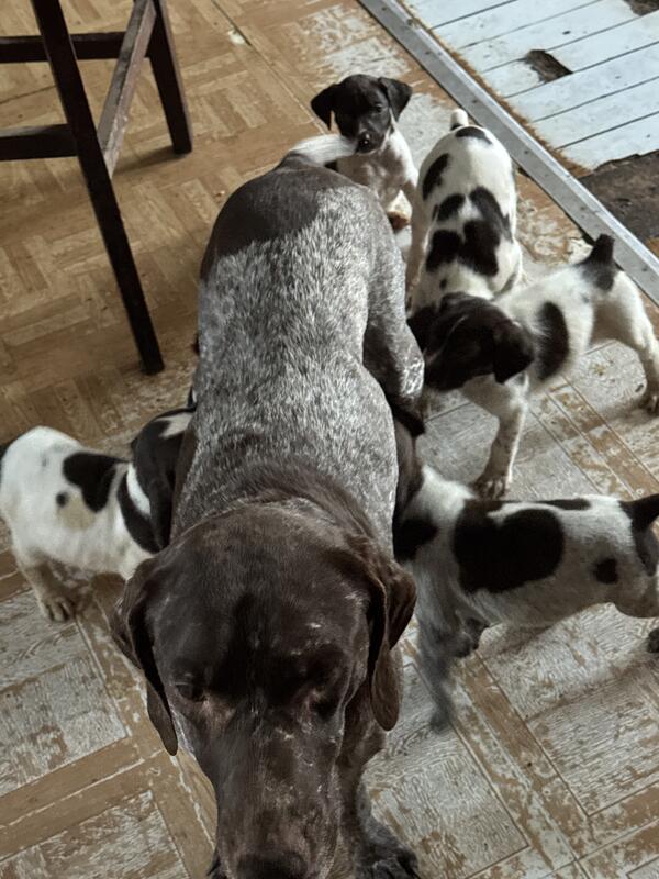 message whispervoe about this ad Please take me to my FOREVER home. I was Born on 10/21/2025 AKC Purebred German Shorthair pups for sale. Tails docked, dewormed. Potty training outside , crate trained. Smart hunting parents. Brown/ white ticked and. 2 Brown. Im waiting for You! Text Deb at 218-591-4723 |