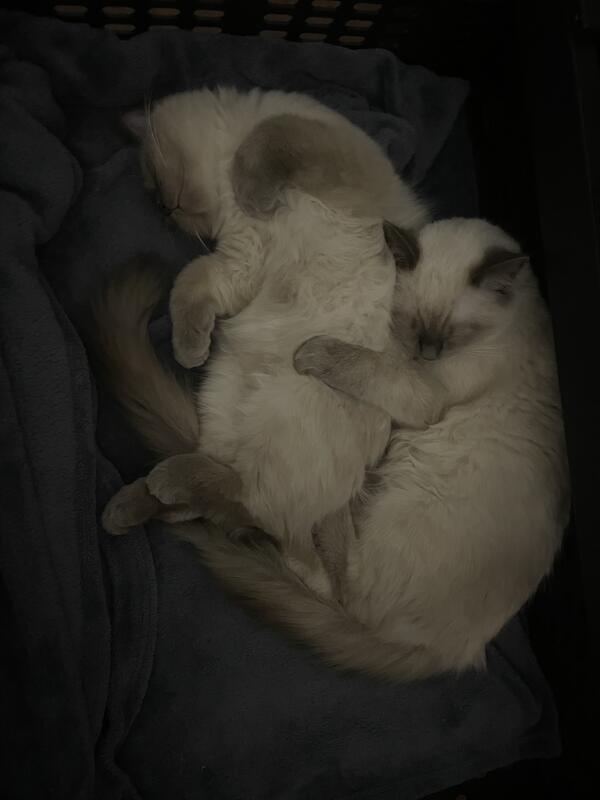 message terrythao about this ad I am looking to rehome two beautiful blue mitted Ragdoll kittens. Both are males, approximately 6 months old, born around June 22 (per previous owner Unfortunately, due to allergy issues, Im unable to keep them. They are being rehomed together and will go to a loving home with everything they need to settle in comfortably. Rehoming Fee: $1,300 (for both) Includes: Cat tree Toys Food and water bowls Cat food Litter box with litter and pee pads Original cat carrier I am their second owner, so some information is based on what I was told: Dewormed Not neutered Not vaccinated Meet the boys: Milo Smaller and darker in color Extra fluffy and very cuddly Shy at first, but loves attention once comfortable Calm and gentle personality Leo Bigger and lighter in color Very vocal and loves to purr Playful, energetic, and curious More outgoing and social Serious inquiries only. Located in the Twin Cities area Cash only Willing to meet at a public store parking lot for drop-off Contact: 651-508-8162 message terrythao about this ad |