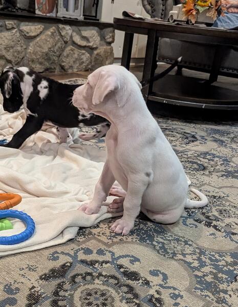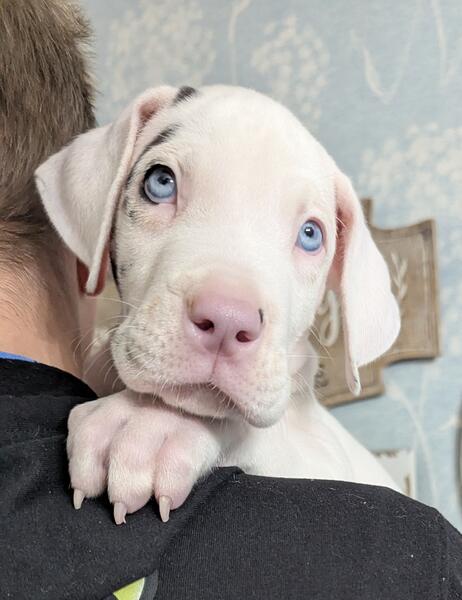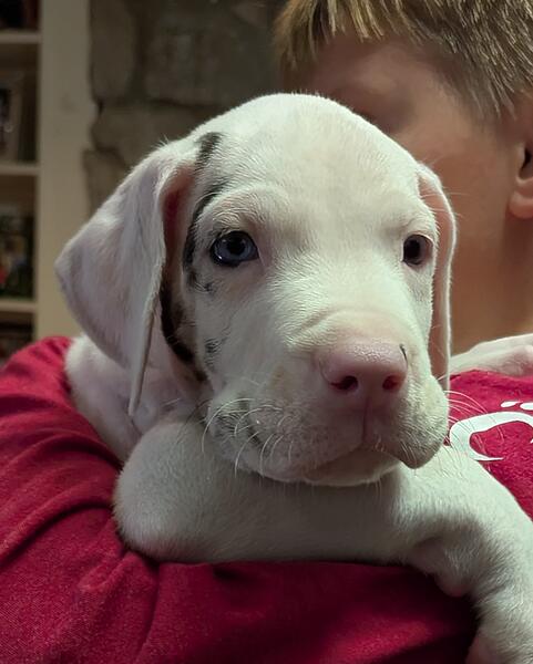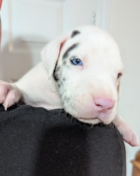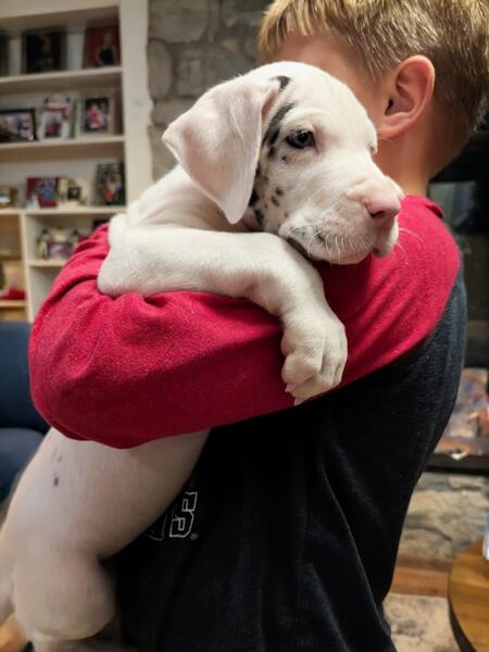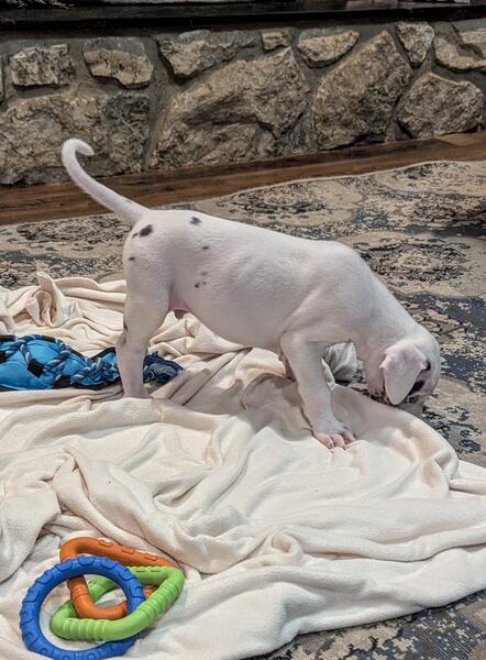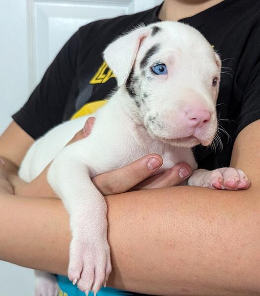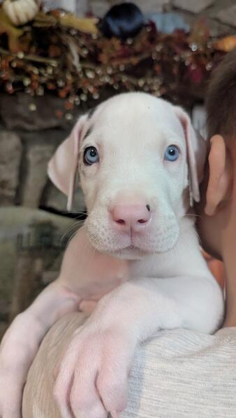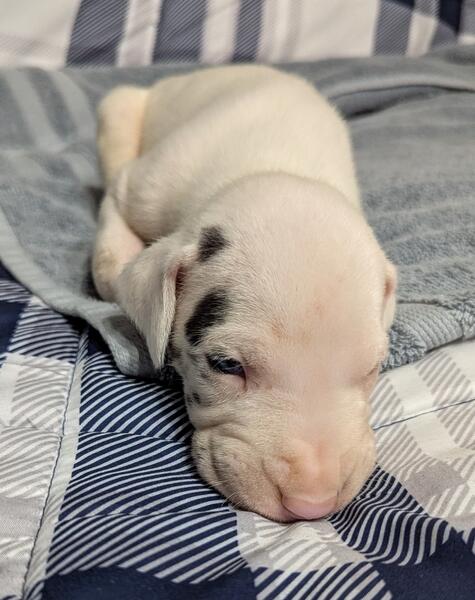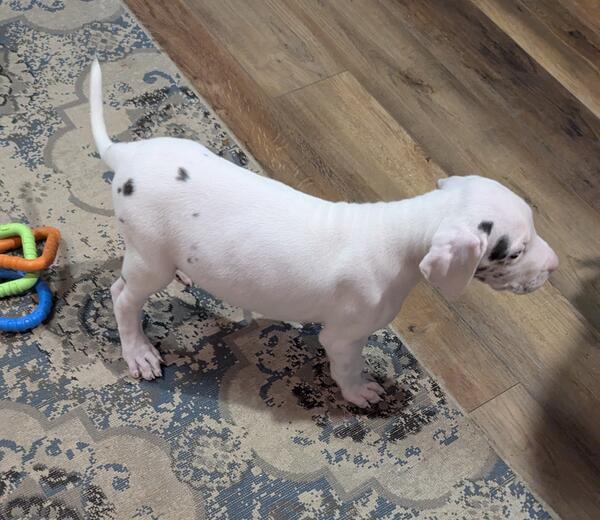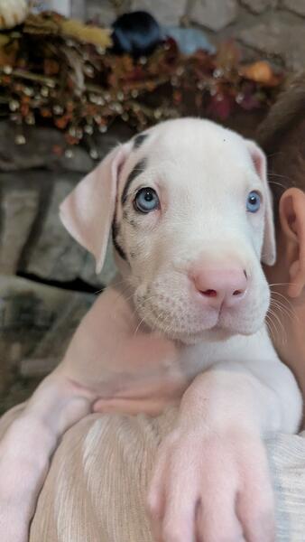 message djkl82 about this ad Akc Great Dane light Harlequin male. Born September 24 New home ready Nov. 19 Home whelped and raised. Socialized with children and other animals. Will come with: Dewclaws removed. Complete deworming schedule. First set of shots. Vet check and vet records. Appreciate AKC paperwork. Start of house training. We have 23 years of breed experience. Happy to provide additional photos, videos , FaceTime to view pups. |