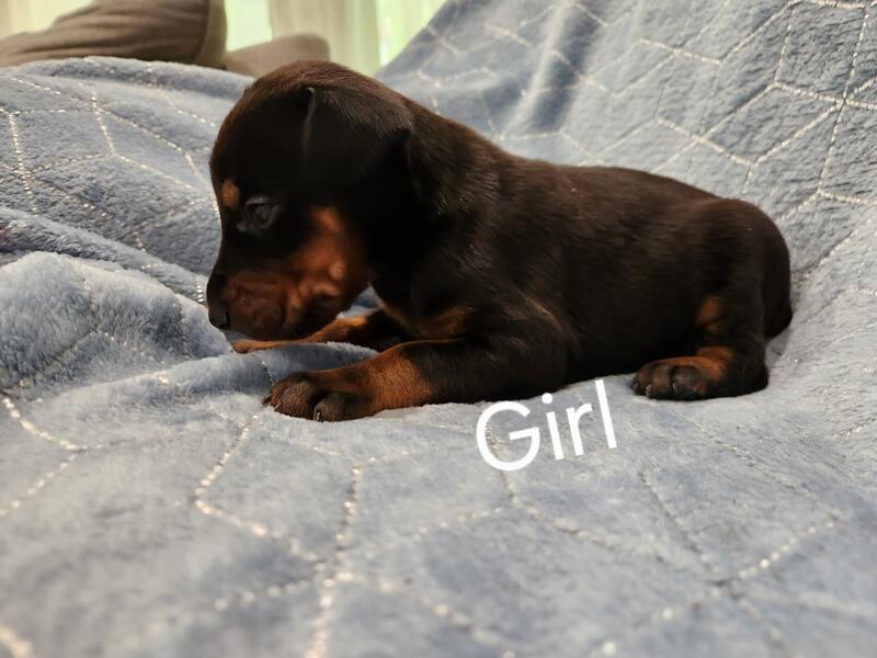 message crgmlc6459 about this ad 4 males and 1 female available. AKC registered. Mom and Dad on site. Health tested. We have a Facebook page and lots of references. We pride ourselves in offering healthy well bred Dobermans to the average family. Our puppies are raised in home. We live on our farm and our parent and pups are exposed to a very active life. Mom is a bit of a lazy dog and Dad is very playful but maintains a low prey drive. This couple I believe will produce well balanced puppies that will fit in well with families or a work dog program. Our previous puppies have been everything from lazy boat dogs, to competitive dive working dogs. Both parents have a great temperament. We offer ear cropping with our experienced vet. Ear cropping os optional but recommended if you plan to have ears cropped. Puppies will be fully vetted according to age. We do pick up after 8 weeks at the very earliest. unless we get them cropped them pick up will be closer to 12 weeks. We understand getting a new puppy is exciting but there is so much they can learn from mom and siblings staying an extra week or two making the adjustments to a new home easier for the new owner and puppy. We start kennel training at 8 weeks. Please feel free to reach out with any questions, we also do video calls for those who have to travel. 9196219985 price posted is without crop message crgmlc6459 about this ad |