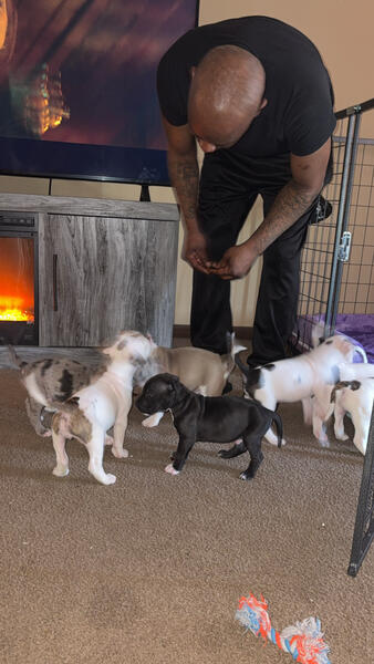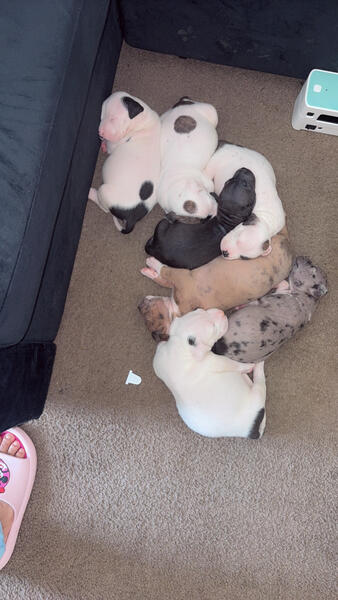 message tiffytaffy30 about this ad Mother of litter is Pablo standard and dad is gator xl Merle . Mother was extremely fertile with a total of 16 puppies no breeding rights 500 flat 1 girl and 3 boys available I am looking to rehome them to a loving family that willing to send updated photos twice a year. |