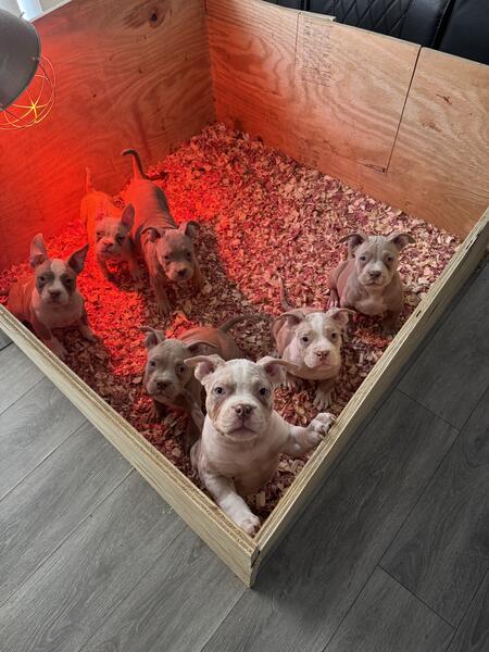 message mwb15 about this ad 10 week old American Bully puppies available MWB Griselda x DRBK Eddie 2 champagne males, 3 Merles & 1 chocolate tri male available $500 1st set of shots & ABKC paperwork |