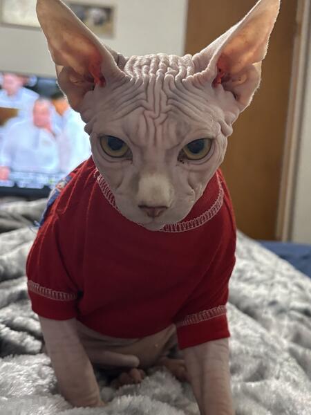 7mo old sphynx male, good with dogs and kids up to date on shots