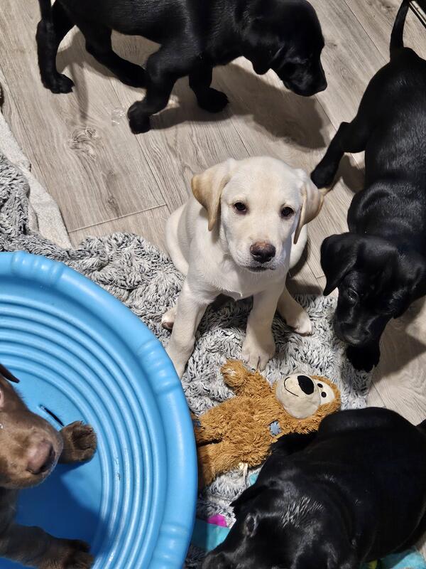 message pguilds about this ad Akc registered labrador retriever puppies . Puppies are 12 wk old now ready for new forever home. All puppies will have dew claws removed , first set of shots vet checked 2 x . Mom and dad are utd on shots,ofa excellent on mom hips and elbows health tested DNA from embark. all puppies will come with registration papers, i have a litter planned for spring of 2026. |