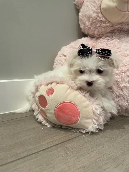 message pnnsn5757 about this ad Beautiful white Maltese puppies ready to go now to there furever homes.They are Hyproallgenic and non-shedding. Raised with children and other pets.Amazing therapy dogs. Loves cuddles and playtime. Pee pad trained. Females available. Will be about 5 lbs full grown Micro chipped Vet checked healthy and had there 1 st vaccines and dewormed phone number :2019056918 |
