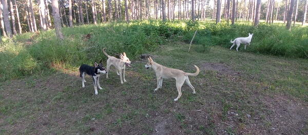 message lazydingo about this ad Last two girls of 9 puppies Born 12/09/23 Baby Girl(Baby G) and Carmel Baby G is goofy, likes attention and exploring and chewing on her bones when she is not hunting for rodents. She is matching in color to her daddy, tans and white with some darker areas on her back and top side of her tail. Baby G likes her bones and laying in the sun. Carmel is more reserved but super sweet and gentle. She is a bit more independent. She doesnt need a pack to be entertained. She often goes or stays out on her own to sniff for critters in the woods and tall grasses. She is the lightest of the girls and has a light tan and white color with a bit of red dusted on top of her head neck and back. Carmel will be a loyal member of your pack as long as she gets the love she gives. |