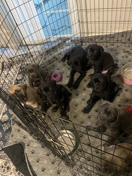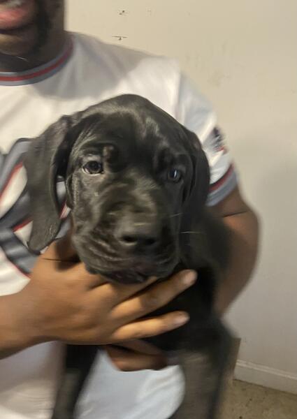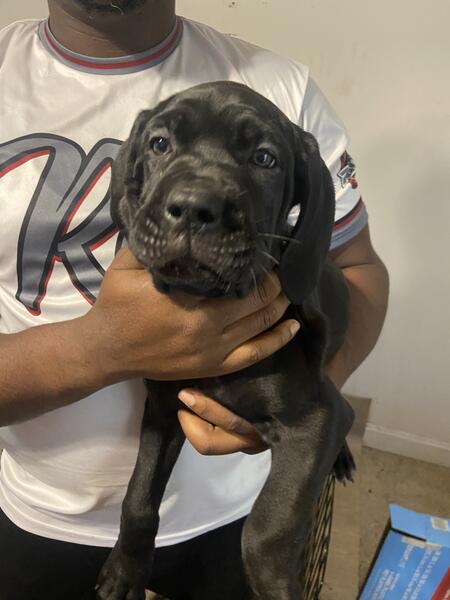 message kwame8907 about this ad I have one male and three female cane Corso puppies left. The fawn male has cropped ears, fawn female has cropped ears as well and the two all black females have natural ears. The puppies are 13 weeks old are up-to-date on shots and are all ICCF registered. |
