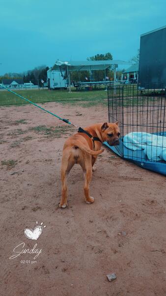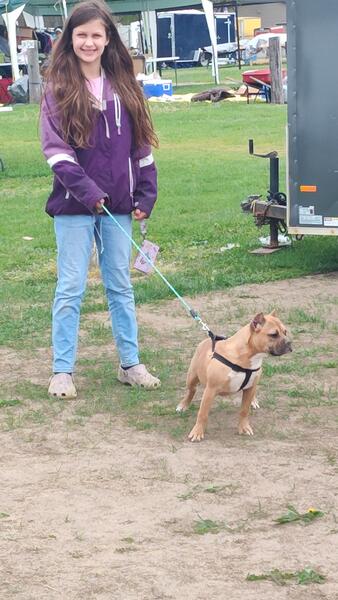 message diggidydogs about this ad Cherry is a bully she has had all of shots including rabies at the vets, worming, ear cropping and clean fecal. She has been around our 5 kiddos and farm animals. She has been to the groomers and is stunning. She is crate trained and will come professionally groomed.350 |