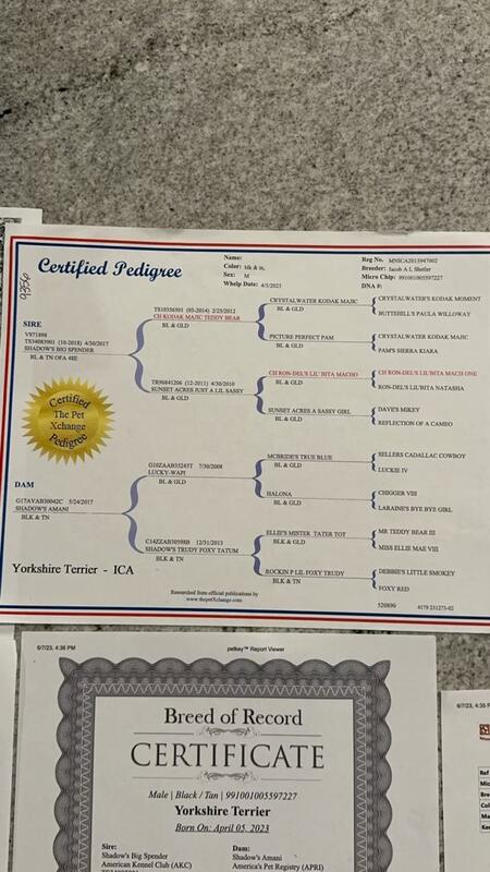 message deshun about this ad Teacup yorkie year old Register paperwork the whole 9 Posting for a friend her number 706/352/7370 Very smart and loving and is kid friendly Have to get use to larger breeds |