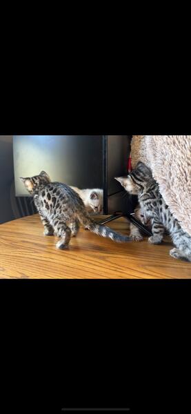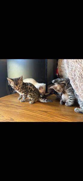 message karsynball18 about this ad Taking deposits currently on our bengal babies! Will not be registered but can provide paperwork proving full blooded. They will all be spayed/neutered before leaving with first set of shots complete. Mom is snow mink dad is charcoal. Snow female: $800 Snow male: $800 Mink female: $1000 Charcoal female: $800 Brown female: $600 |
