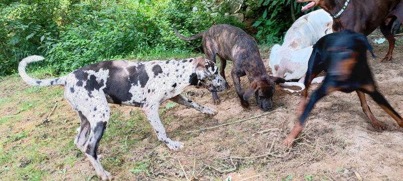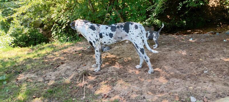 message krs81496 about this ad 1yr old looking to get 1st & 2nd pick of litter or 500 stud fee. He is not proven but don't think he will have an issue Will not breed to another harlequin or merle period! Do not ask! Solid color Dane, Corso, or mastiff mix only. Father is pictured high white fawn pied. Mom is solid blue Corso. If you have any questions please let me know. |