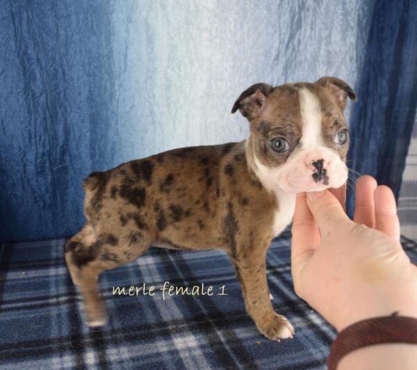 message cadogans about this ad Merle female carrying chocolate and dilute! (BbDdMm) born 9/29/25. Will be 8 weeks on 11/24/25. Both parents 16-17lbs so will stay small! Dad is a chocolate merle carrying lilac and Mom is a brindle carrying chocolate and dilute. Parent's health tested and OFA heart normal, OFA patellas normal, full panel DNA negative/ clear including DM and juvenile cataracts so pups can never be affected. Pups raised inside, socialized and sweet temperaments. Will be vet checked, vaccinated, dewormed, microchipped and receive first month of flea spot on and heartworm prevention. Chocolate boy is available for $1500 as a pet with limited AKC registration. Akc full registration/Breeding rights $2000. 1 year health guarantee and free month of Trupanion health insurance. Located in Clinton IA - can meet Chicago people in Rochelle if interested. |