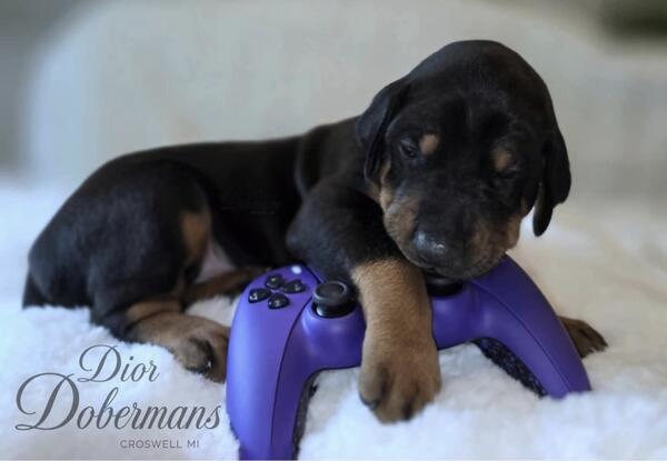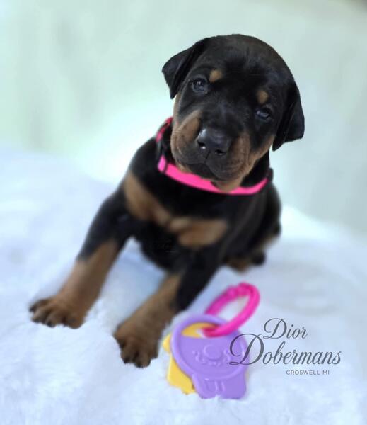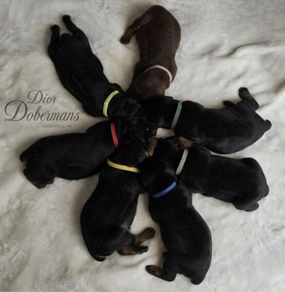 message diordobermans about this ad Beautiful Doberman Puppies. Our Puppies are located in Croswell, Michigan. Dior Dobermans can be viewed on Facebook. Puppies go home with Health Certificate from Vet. Up to date on Shots and dewormings. Tails docked, dew claws done. Registration Application. Please feel free to ask any Questions. |