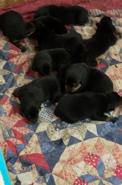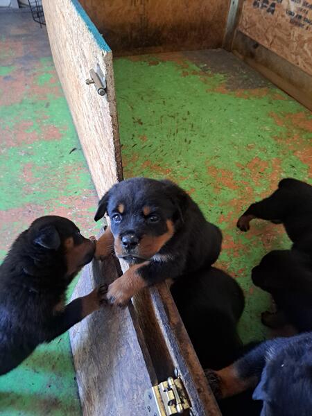 message brckhs5577 about this ad I have 8 Rottweiler puppies for sale. We have 4 males and 4 females available. The puppies are 6 weeks oldand come from loving home , parents on site/ both parents are AKC.These puppies are German rottis/ tails docked.Call for details at 727 484-8557.pics on request. |