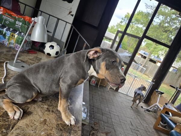 message andrea510 about this ad Tri-colored American Bullies are for sale. Two male puppies available. They have already been dewormed and have received their first vaccination. We can provide details of the vaccination. We are open to negotiation on the price. |