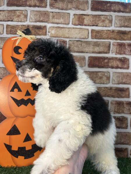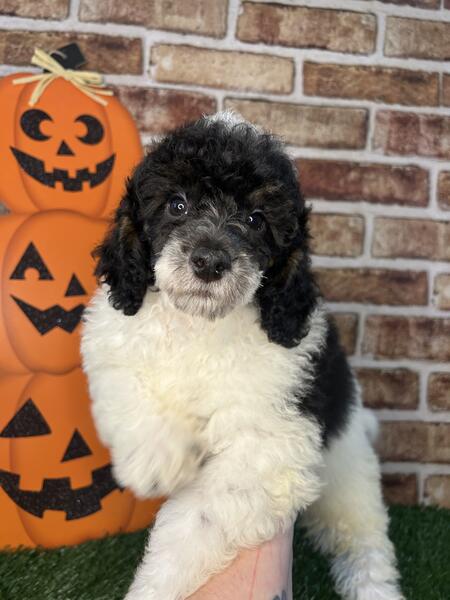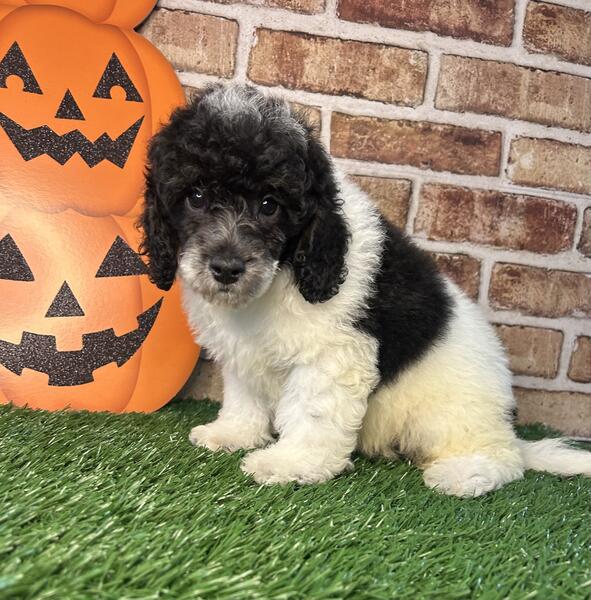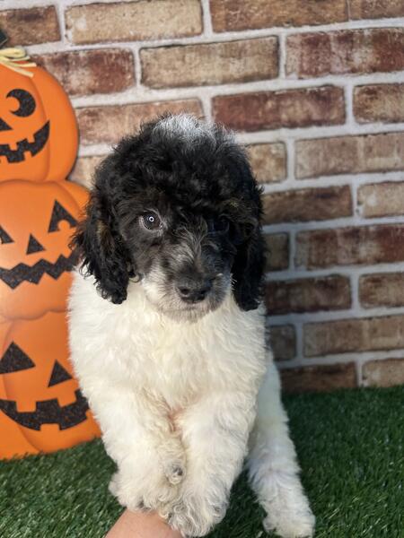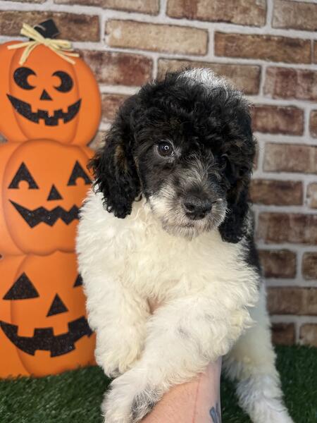 message cameronspoodles about this ad This guy is the last of his litter, hes a very handsome phantom parti and would be a great stud candidate but has the sweetest personality and is a ham for attention so would be an even better family pet. I have a litter of Mini Poodles. This litter is unregistered due to a rendezvous in the middle of a torrential downpour. Pepper is a 15 pound black and white parti. She was supposed to be bred to Pringles, my 9.5 pound black and white merle Toy Poodle. However, during the storm Pickles my 16 pound blue merle phantom Mini Poodles, got her. Born 8/17/25 Ready after 10/14 1 black phantom parti male $650 Females-All found homes -Black and white phantom parti-Reserved -Black brindle point phantom-Reserved -Black Brindle/Sable/Seal Abstract -Black phantom Reserved Will be current on vaccinations, dewormings, and vet checked Not registered but all parents are registered. Microchipped with lifetime activation paid 30 day free trial of Trupanion Insurance 1 year congenital health guarantee Parents health tested Estimated 10-16 pounds message cameronspoodles about this ad |