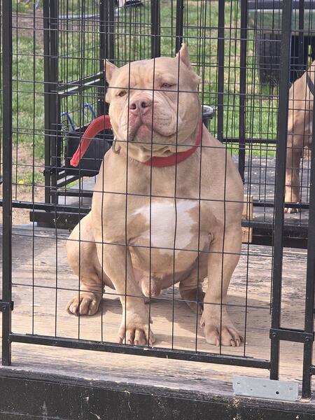 message bullychief about this ad 2.5 years old red brindle produced in house by me. ABKC REG utd on shots priced as 1000 obo Contact G 410 829 7517 located on eastern shore MD |