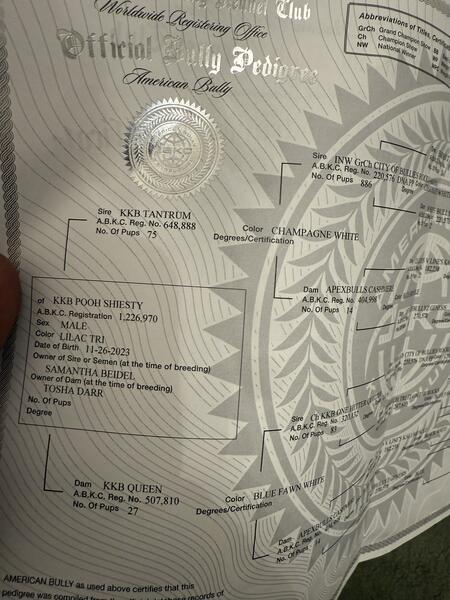 Lilac tri direct grandson of Gr Ch Rockomania ABKC registered