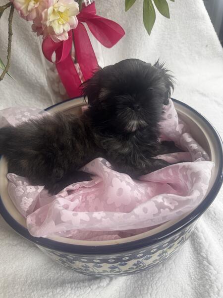 message bakiej about this ad Darlene Shih Tzu puppies for sale! I have three girls, but one is already sold. So you must act quickly! They are already using a puppy pad. They will have had their first shot and they have been wormed. They are purebred AKC purebred, but that is Pet price which means no papers. Hurry they are, darling! |