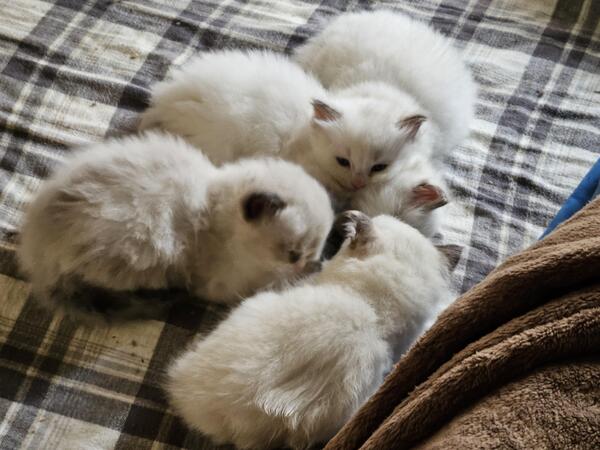 message pnmcattery about this ad White Ragdoll kittens available for immediate rehoming 5 months old 2 males They are potty trained, dewormed and defleaed. They are very playful, like to cuddle, and human friendly. They will sleep with you if you let them. Asking $650 for Males Quantity discount available. Please text or call 425.232.2898 for more info |