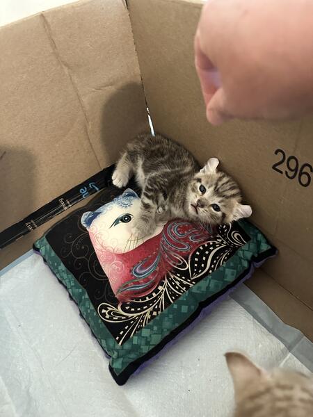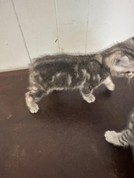 message dobies about this ad Male 6 weeks old. He comes with shots dewormed. Also a one year genetic guarantee. DNA tested. He has a natural short tail, curly ears and extra toes. Hes very playful, healthy, and used to dogs already. Also, he is litter trained. Very sweet hearted kittem like Highlander cats are known to be. |