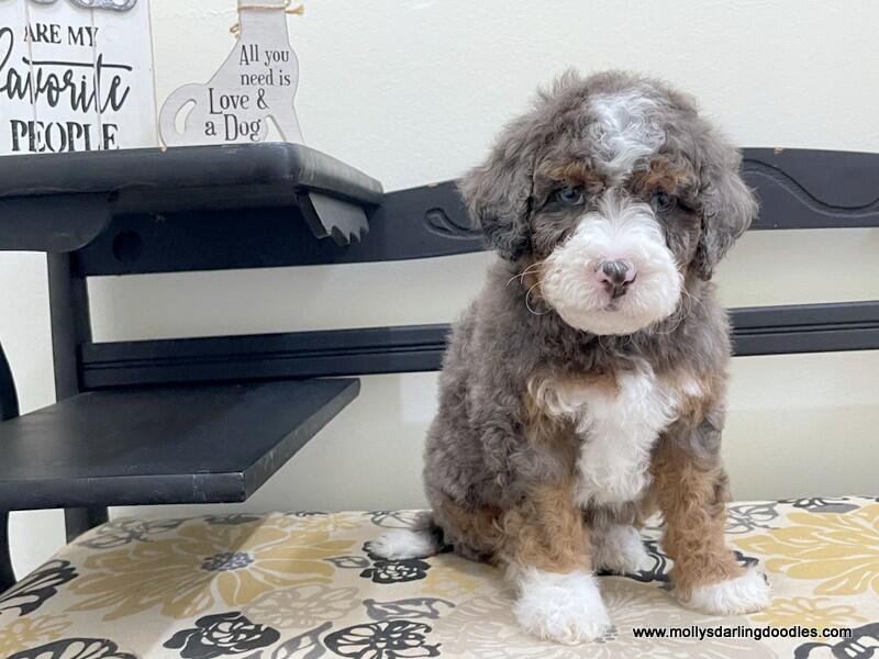 message mjlafleche about this ad Potato wowed us with a litter of 10 mini Bernedoodle babies on Nov. 21st! This is a repeat breeding due to great feedback on these babies. If interested in one of these babies, please visit my website at www dot mollysdarlingdoodles dot com for info. |