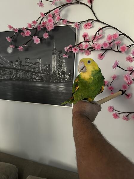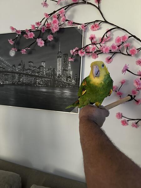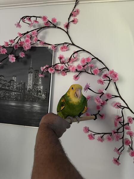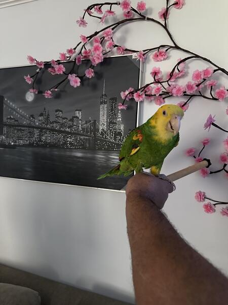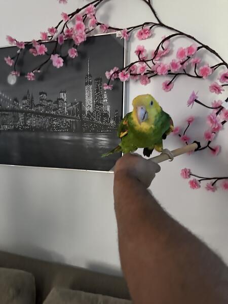 8 year old double headed Amazon not hand tame but can be trained to be dna tested male