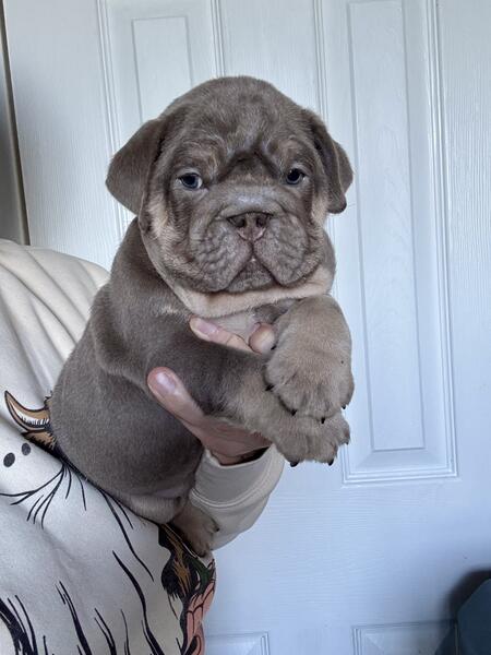 message hcb20 about this ad 8 weeks old male English bulldog puppies Utd on shots and vet clearance Ready for a new home! Great potential studs for any program! Price listed is full akc. Happy to FaceTime Message for more info Pet price is $4500 no breeding rights |
