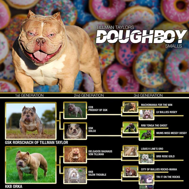 message htillman about this ad Doughboy smalls is open for stud at an intro price of $500+ a pup back OR $2500 outright (as of January 1st Abkc registered. His bloodlines include: GRCh Rocko, 2x oro, 3x Louis v, Cliquot, bauhaus, and mikelands |