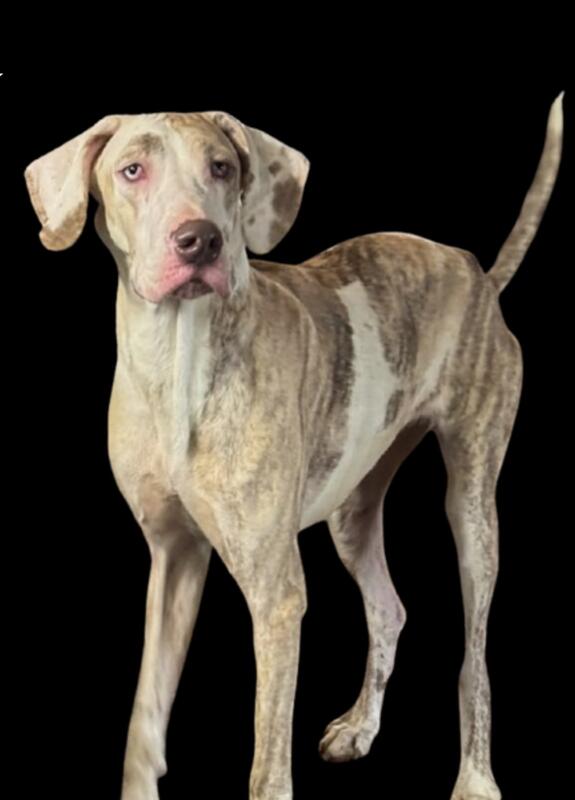 Akc female heavily marked chocolate brindle harlequin will be 2 in November carries blue and tan point
