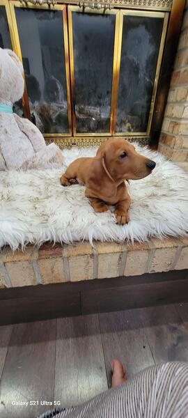message greenbay about this ad We have 7 Grand Champion blood lined smooth coat Mini dachshund ready to go Pups are 10 weeks old, are utd vaccinations and dewormings Male and Females avail We have red, red dapple, black and gold, chocolate dapple available all carry dapple Our prices vary and depend on if you would like papers or not so the price indicated is not necessarily the price of the pup they start at 750.00 They are all sweethearts and are pad trained and starting potty training each pup comes with their health records and goodie bag we have a contract at pickup and all of our pups are born and raised in our home with us Parents are located in my home as well if interested pls message me here or feel free to text me at 937 658 4267. Plenty of pics can be sent Cash is required upon pickup we are located in Sidney ohio and do not ship but may work with your shipper |