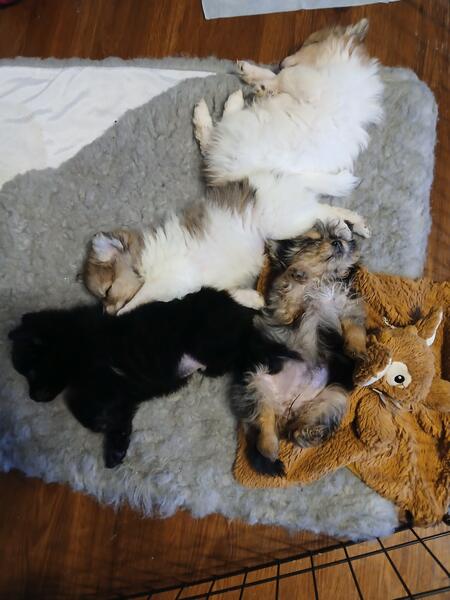 message sarakg1 about this ad Mom is pomapoo, dad is full pom. These babies are mostly pomeranian. 1 female parti merle , 1 female parti Sable, 1 black male. They are 8 weeks old Nov 4th. Potty on puppy pads and eating food! |
