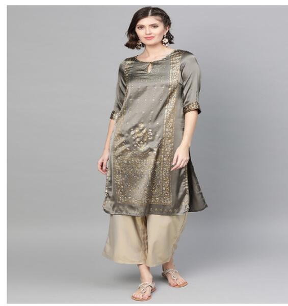 message rohinee about this ad Product Code: 10206811 Charcoal grey and golden satin finish printed straight kurta, has a keyhole neck, three-quarter sleeves, straight hem, and side slits The model (height 5'8 is wearing a size S Make a statement with this elegant kurta from W. Look chic for the day with this charcoal kurta and leggings. Material: Polyester Hand Wash httpsmyntr.it/tCbgtf6 |