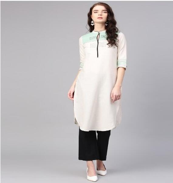 message pritee about this ad Product Code: 8429437 Off-White and turquoise blue yoke design straight kurta, has a keyhole neck, three-quarter sleeves, curved hem, side slits The model (height 5'8 is wearing a size S Show off your elegant style with a brand new kurta from W. For your next dinner party or family gathering, this off-white piece pairs well with dark leggings and chic flats. 88% cotton, 12% flax Hand-wash httpsmyntr.it/0Jv4z9p |