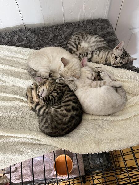 message krrdvm9898 about this ad 5 healthy male bengal kittens, ready to go Memorial day. Parents are health tested for genetic diseases that can be seen in the breed (PRA- progressive retinal atrophy, PKD- pyruvate kinase deficiency, and HCM- hypertrophic cardiomyopathy Kittens are vaccinated (age appropriate litter trained, and come with 30 days of health insurance. Can be neutered prior to placement if new owner wishes. Theyve been raised in our home and socialized to people, other cats, and small dogs since day one. |