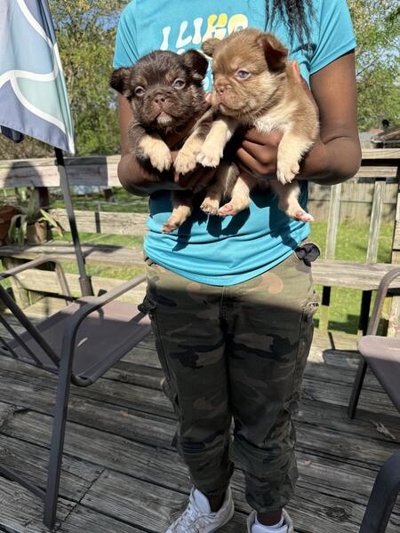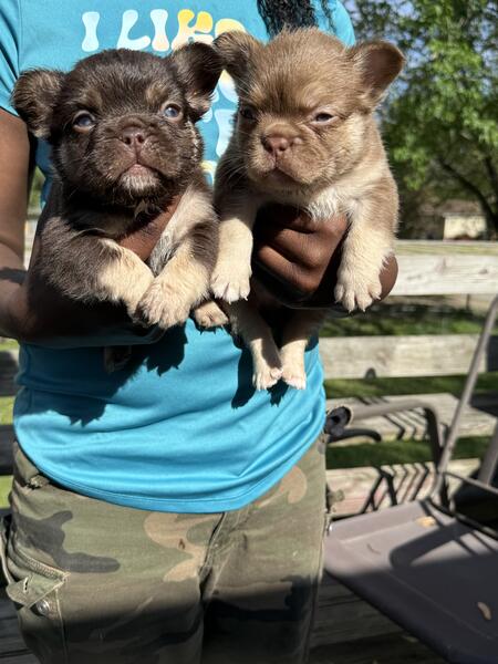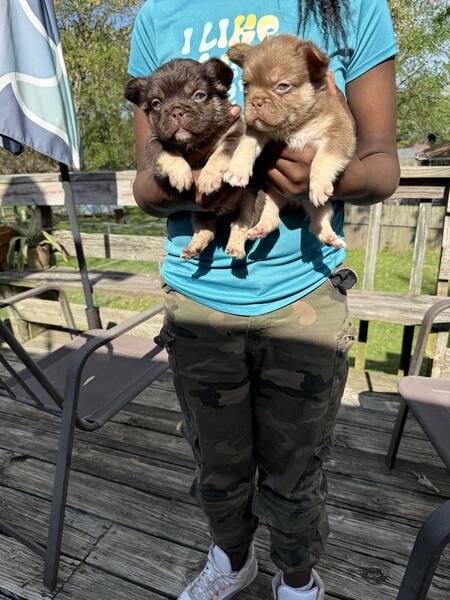 message igottagetit43 about this ad Rojo and tan males one carries pink all nice and thick akc registered dna and health tested contact me for more info 9133152503 mom is a Ric Flair daughter dad is McLovin out of Texas |