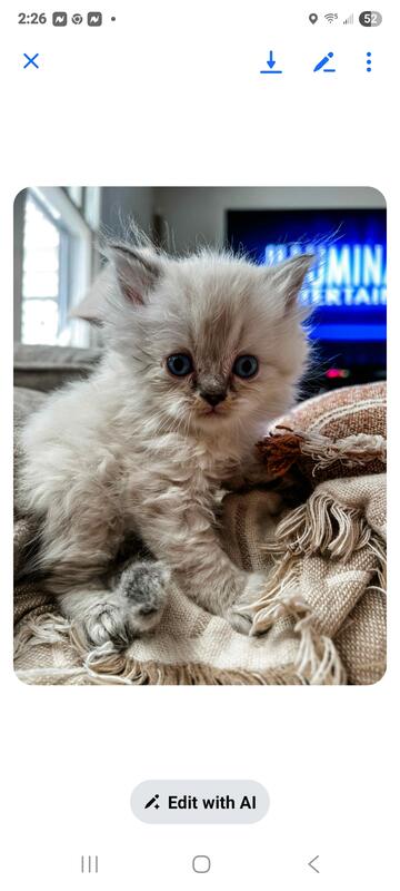 Adorable persian boy. He will be ready around Thanksgiving. Contact me at 419 706-0677 or email