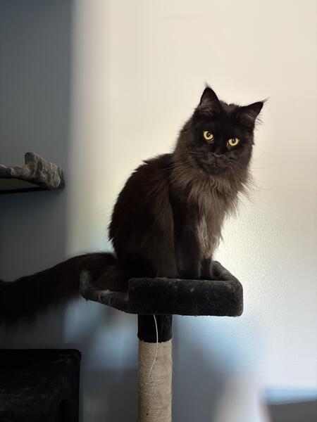 message kkscott about this ad Approximately 2 1/2 year-old male Maine Coon available for rehoming with fee; black - male/neutered; loves to be near his humans, but not necessarily held Super affectionate in the evenings. Location = westside Indy |