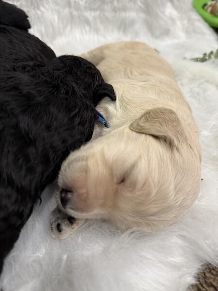 message srobison53 about this ad Welcome! We are a small, loving family raising happy, healthy Goldendoodle mix puppies. Our puppies are a perfect blend of sweet, smart, and playful with beautiful coats and amazing temperaments. The mom is a gentle and affectionate Partidoodle (part Goldendoodle, part Standard Poodle) and the dad is a fun-loving mix of two Goldendoodles, giving these puppies an extra-special mix of intelligence, loyalty, and charm. We currently have 5 adorable girls and 2 handsome boys available. Each puppy has been raised in our home with lots of love, socialization, and care, making them well-adjusted and ready to become a beloved member of your family. We would love to help you find your perfect new best friend! |